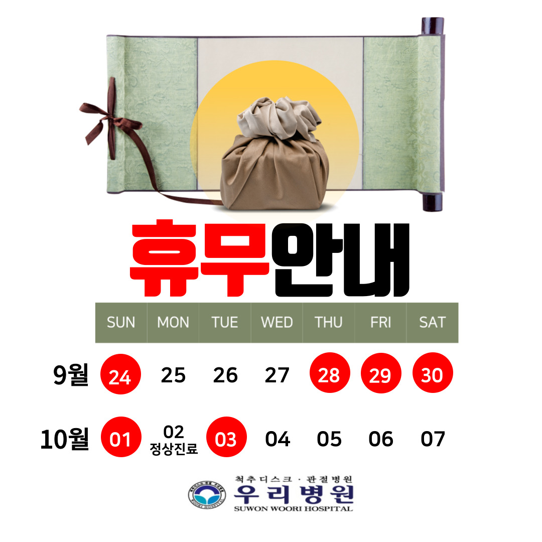 9¿ù 28ÀÏ, 29ÀÏ, 30ÀÏ / 10¿ù 1ÀÏ(ÀÏ¿äÀÏ) ±îÁö´Â ÈÞÁø ÀÔ´Ï´Ù. 10¿ù 2ÀÏ (´ëü°øÈÞÀÏ)Àº Á¤»ó Áø·á ÇÕ´Ï´Ù. 10¿ù 3ÀÏ(°³ÃµÀý)Àº ÈÞÁø ÀÔ´Ï´Ù. Áø·á ¹× ¿¹¾à¿¡ Âü°í ÇÏ½Ã±æ ¹Ù¶ø´Ï´Ù.