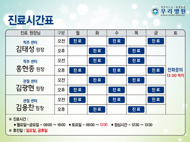 Áø·á½Ã°£ ÆòÀÏ : 09:00~18:00 / Åä : 09:00~13:00