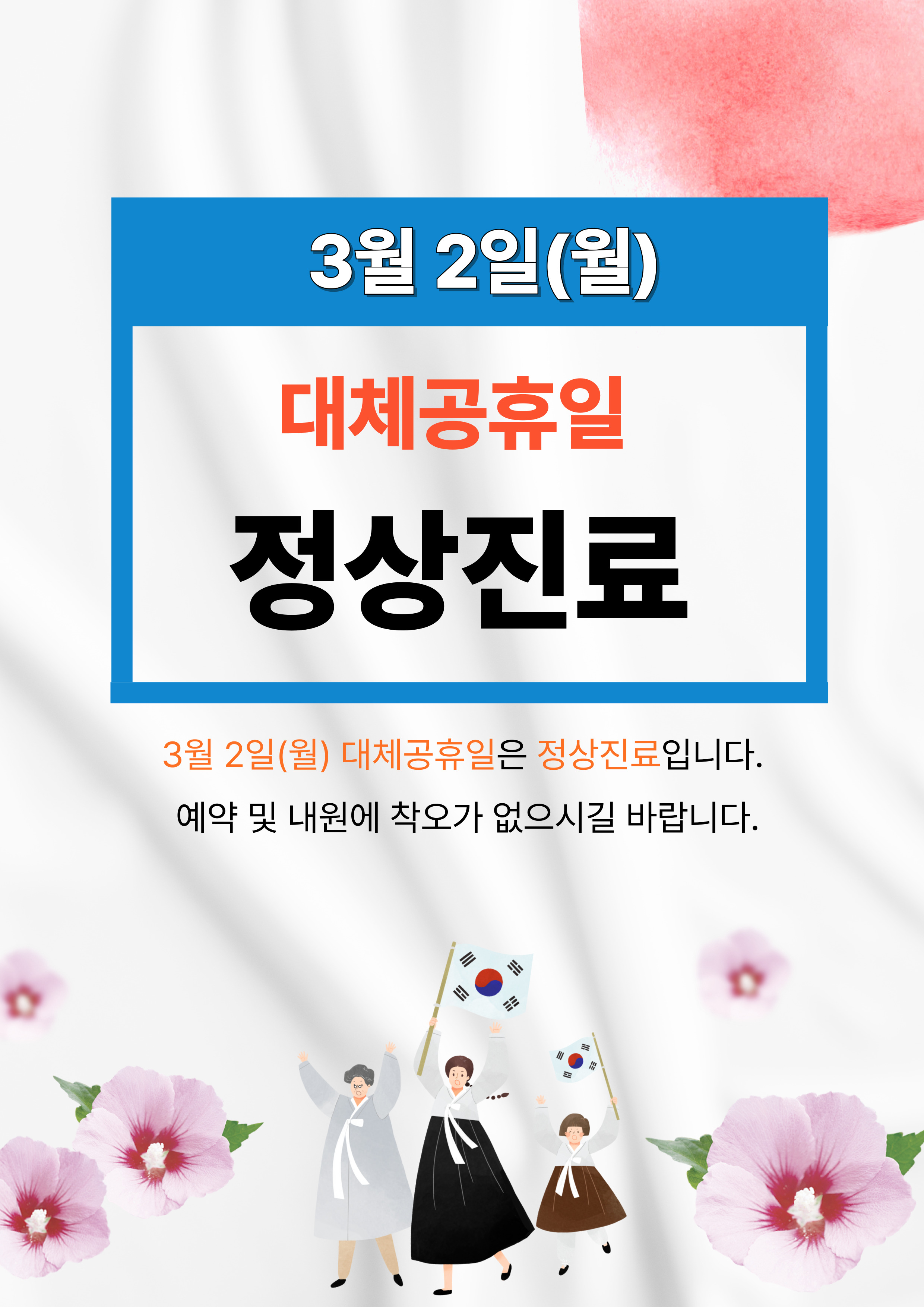 Á¦¸ñ 3¿ù 2ÀÏ ´ëü°øÈÞÀÏ Á¤»óÁø·áÇÕ´Ï´Ù.