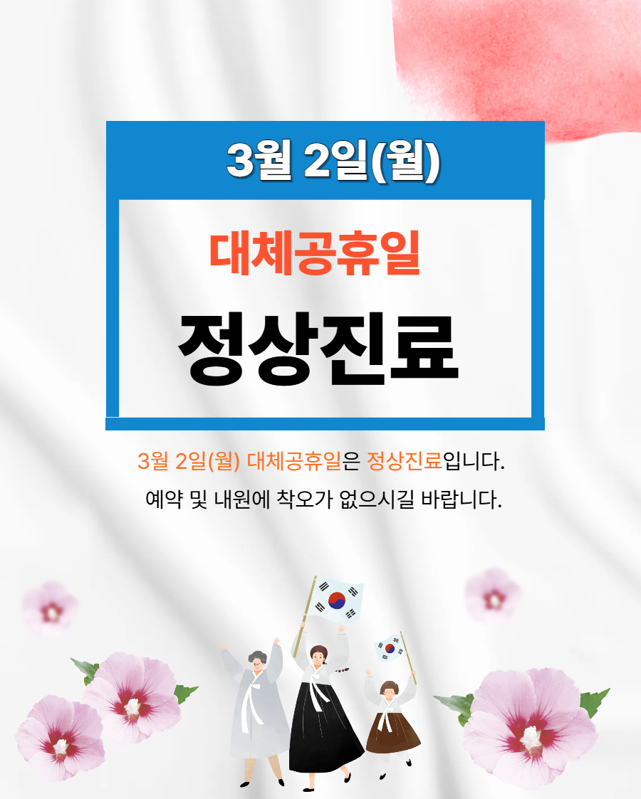 Á¦¸ñ 3¿ù 2ÀÏ ´ëü°øÈÞÀÏ Á¤»óÁø·áÇÕ´Ï´Ù.